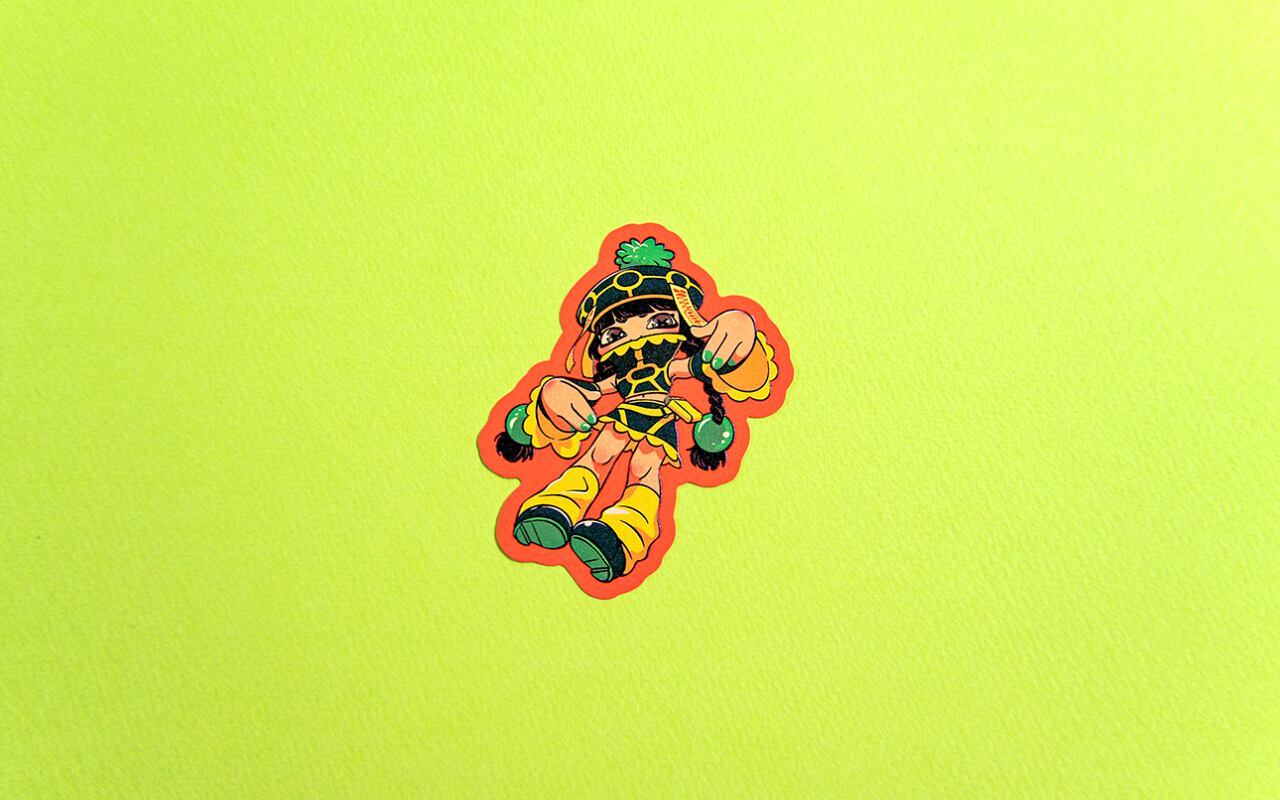 クソアチィくまに登場するキャラクターのステッカーです。 蛍光オレンジの台紙に高品質なUVプリントで目立つ仕上がりです。 ◼︎商品仕様 サイズ:約 縦80mm × 横66mm ◼︎注意事項 ・本サイトに掲載している画像はイメージです。 色味など若干違いがある場合がございます。 ・セール品は返品交換をお受けできません。